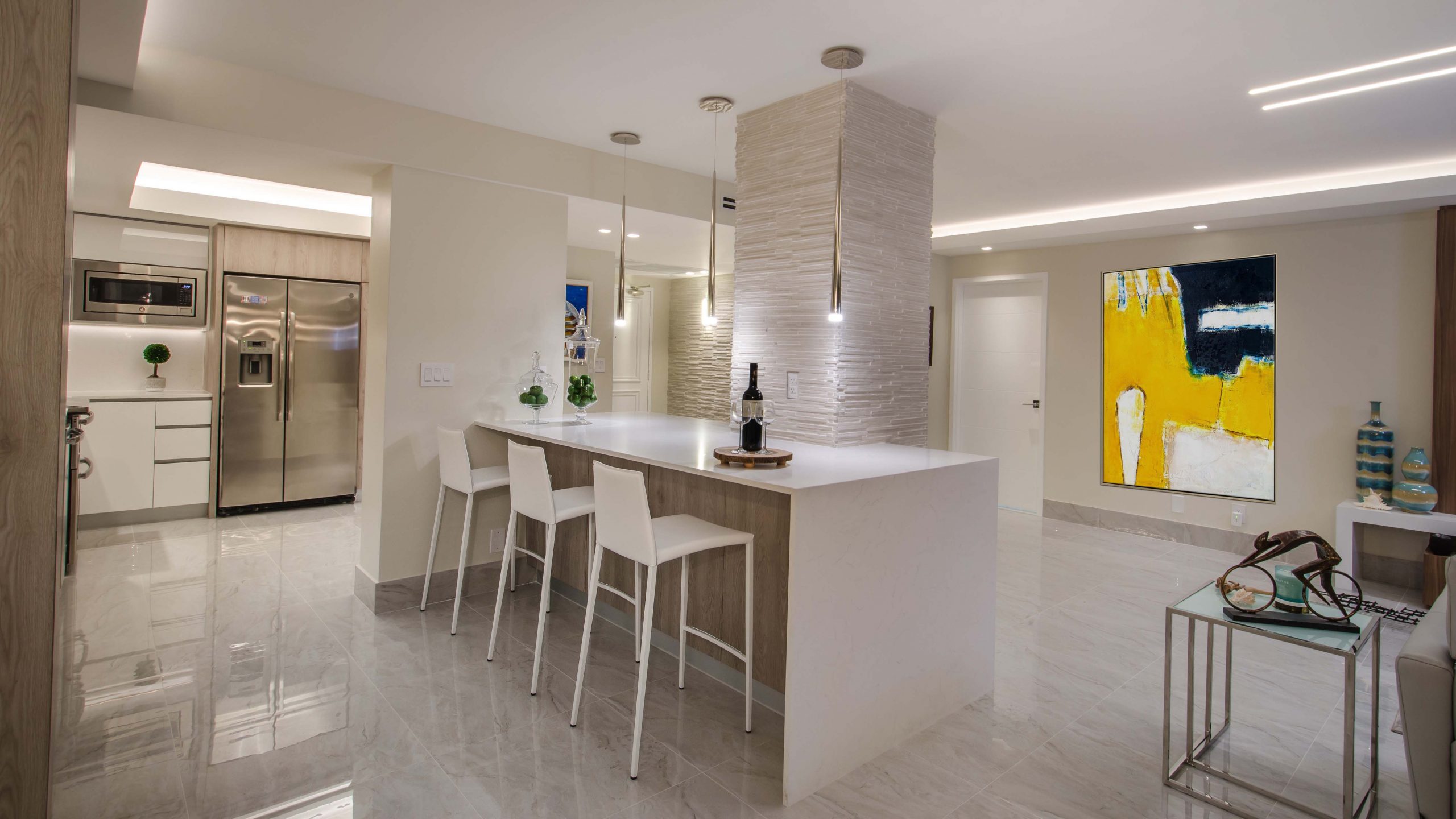 Interior remodeling for a two bedroom two bathroom unit.